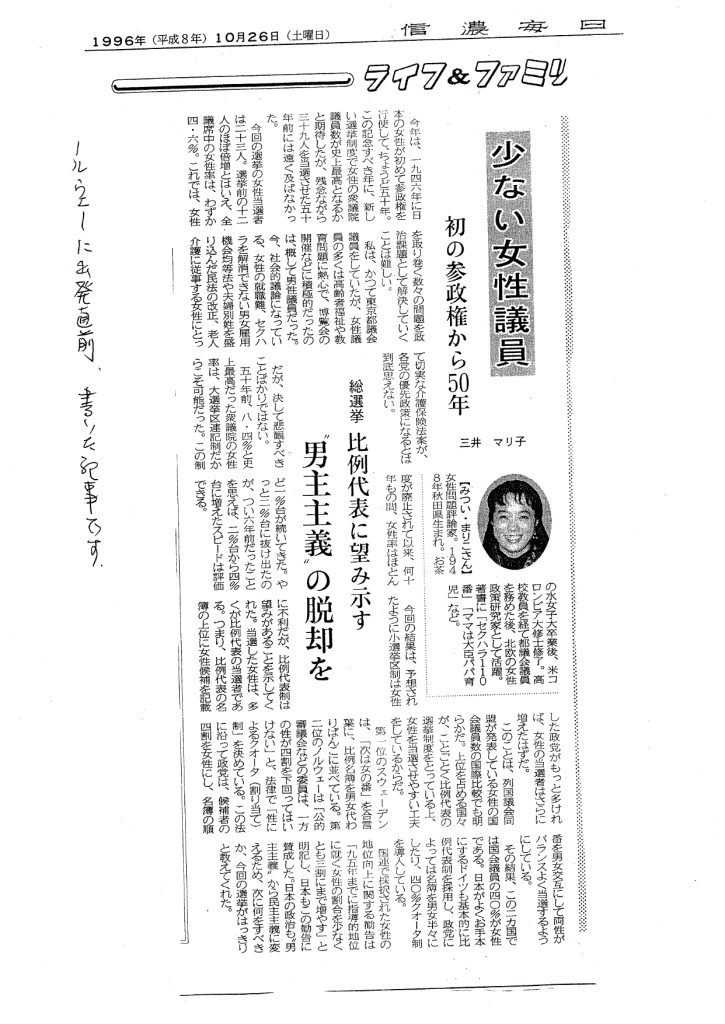 【信濃毎日新聞 1996年10月26日】