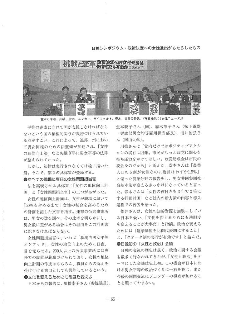 【国際女性デー記念シンポジウム報告書 2011年10月31日】 世界118位現実:クオータは突破口となるのか