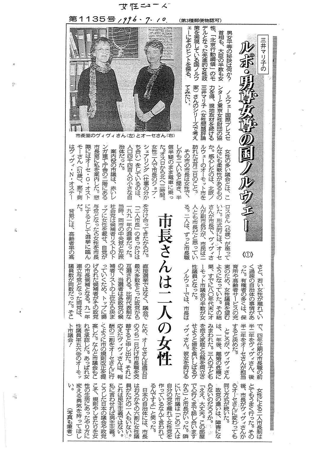 【女性ニューズ 1996年7月30日~1997年1月1日】