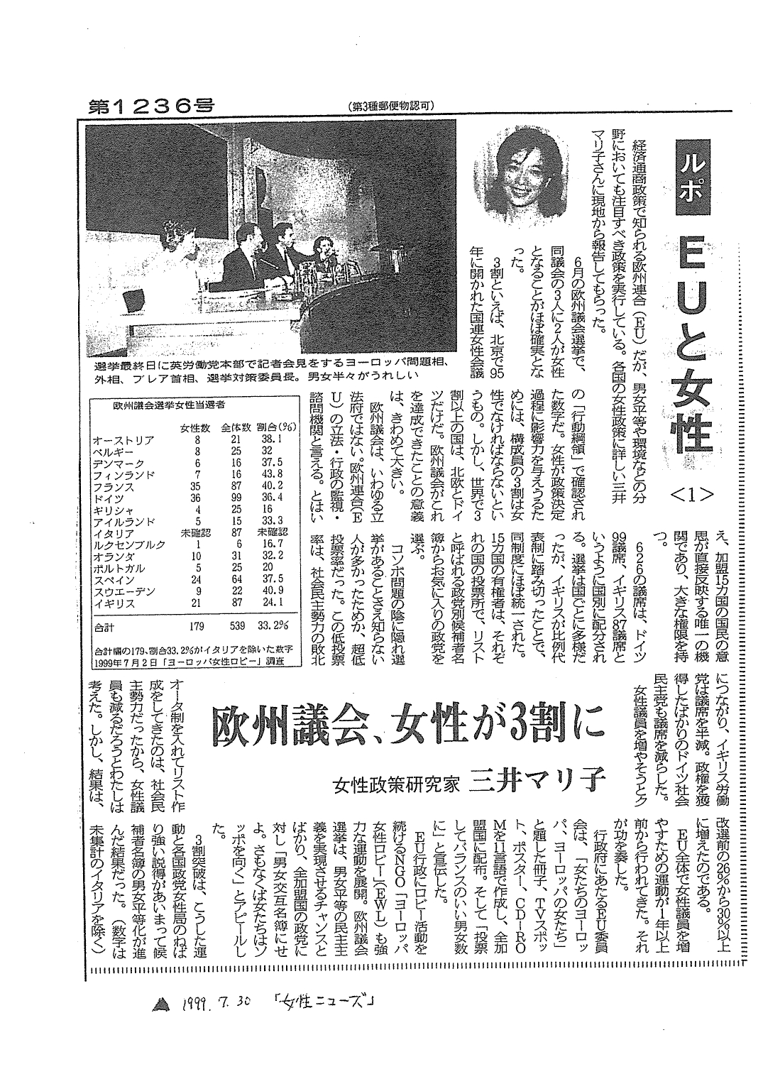 【女性ニューズ 1999年7月30日~1999年9月10日】