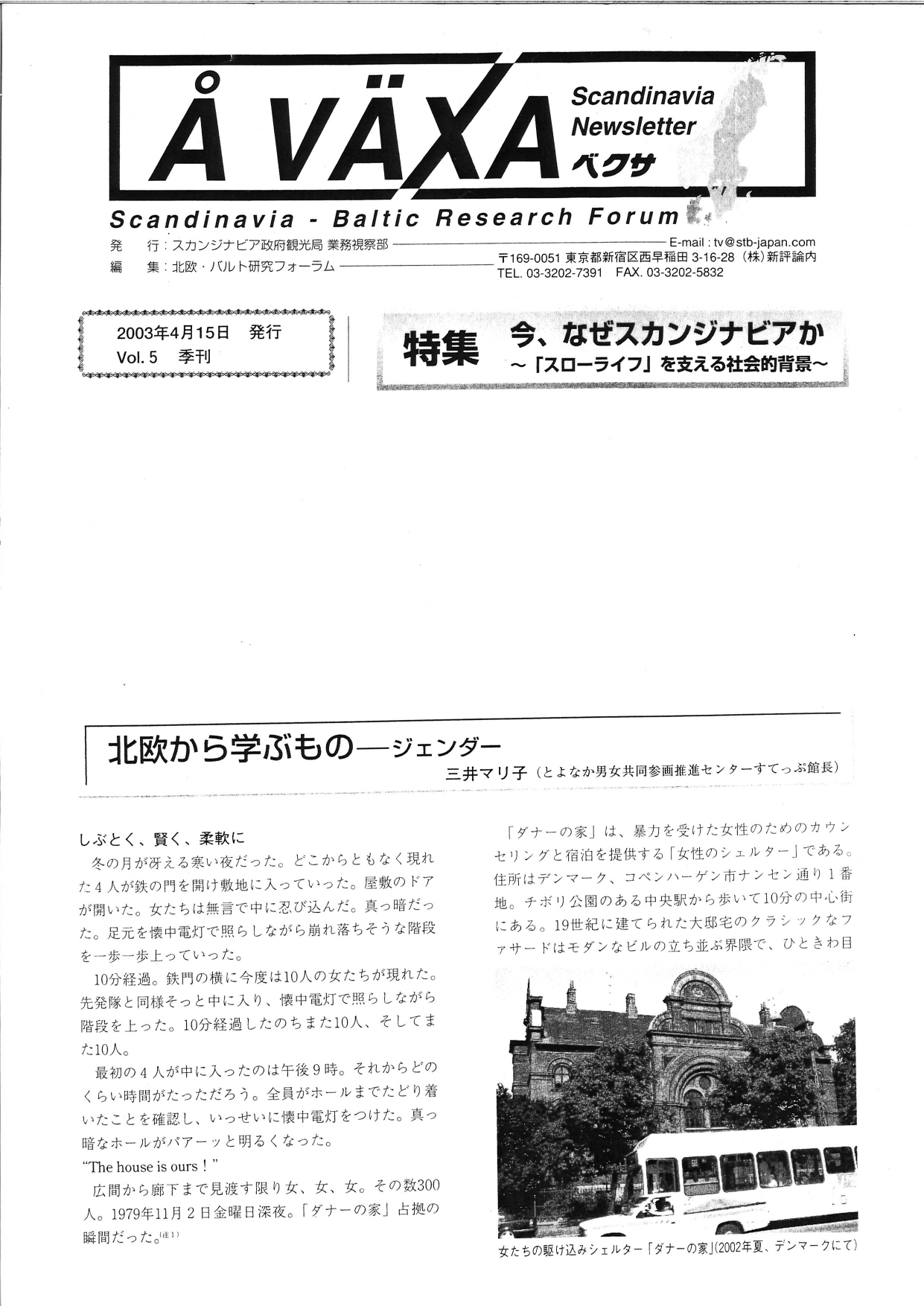 【スカンジナビア政府観光局Newsletter「ベクサ Å VÄXA」 2003年4月15日】