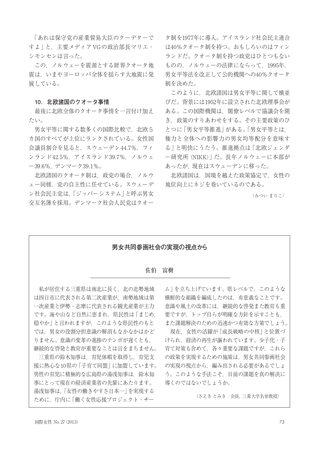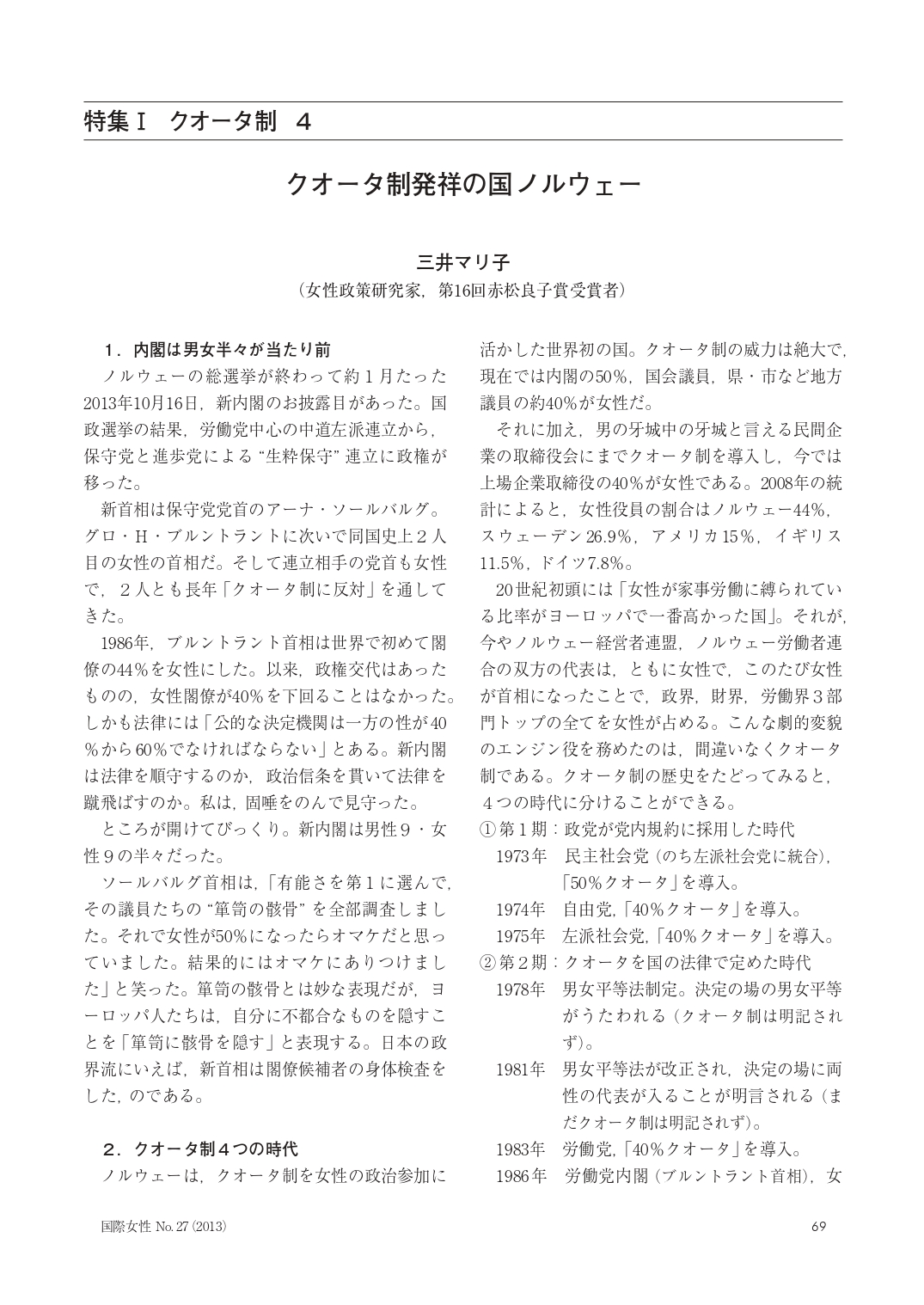 【国際女性 No.27 2013年】