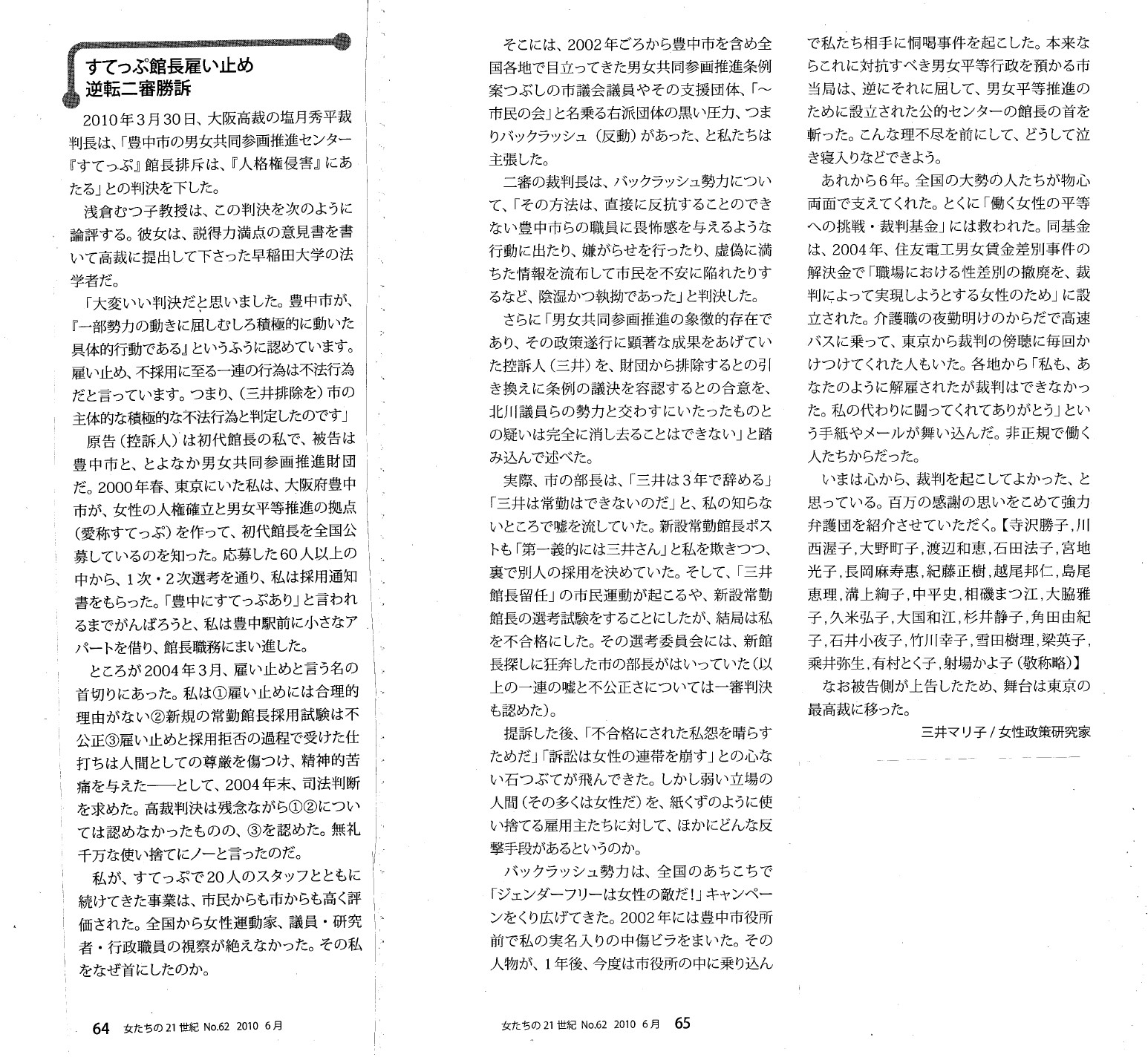 【おんなたちの21世紀 No.62 2010年6月】