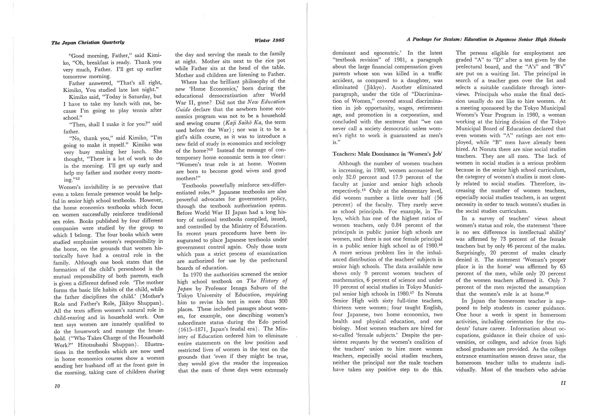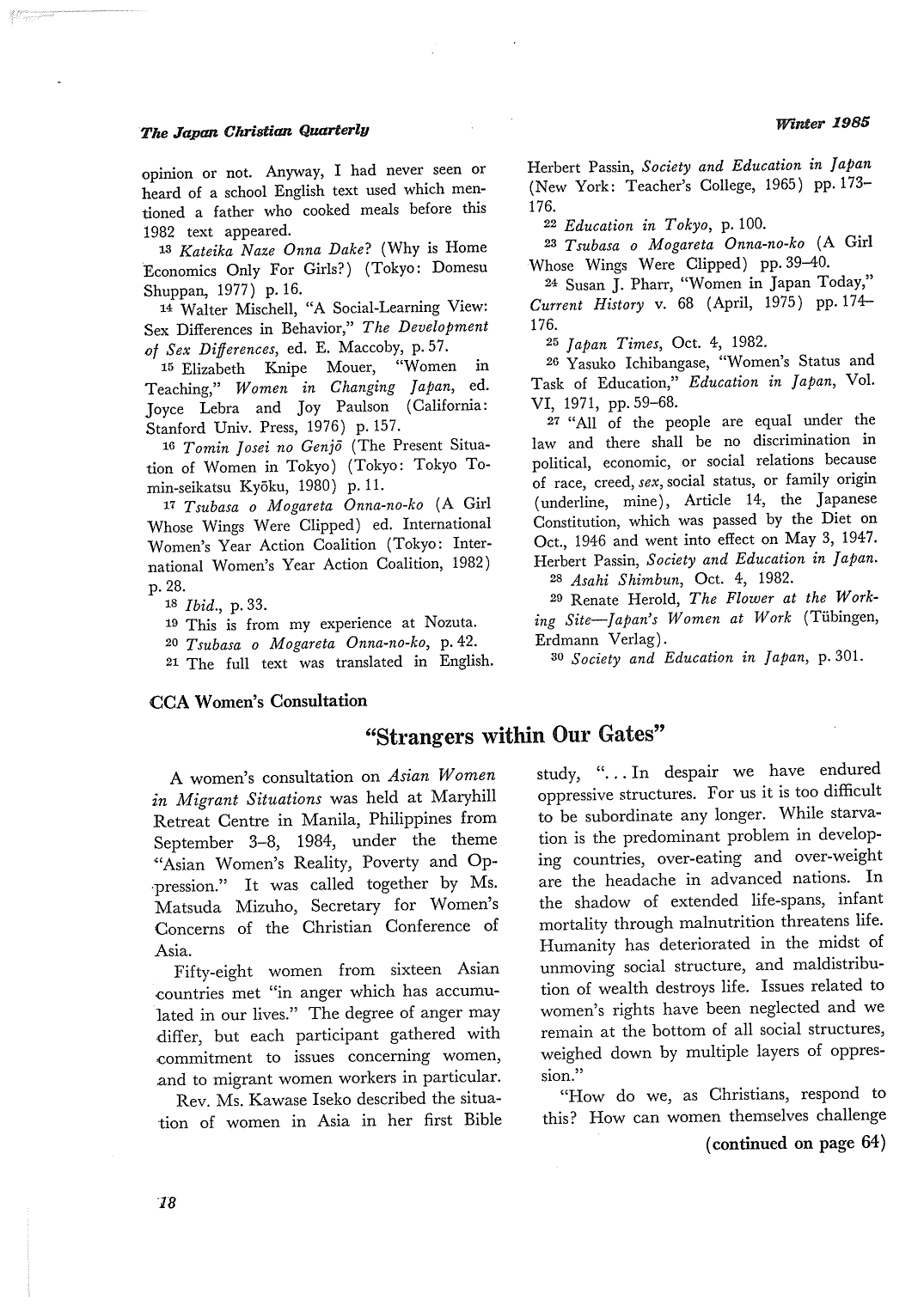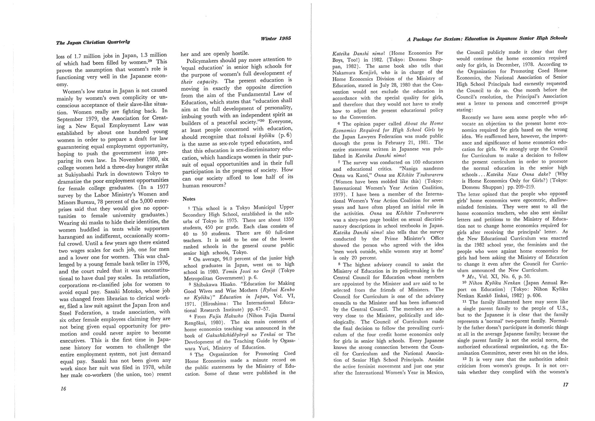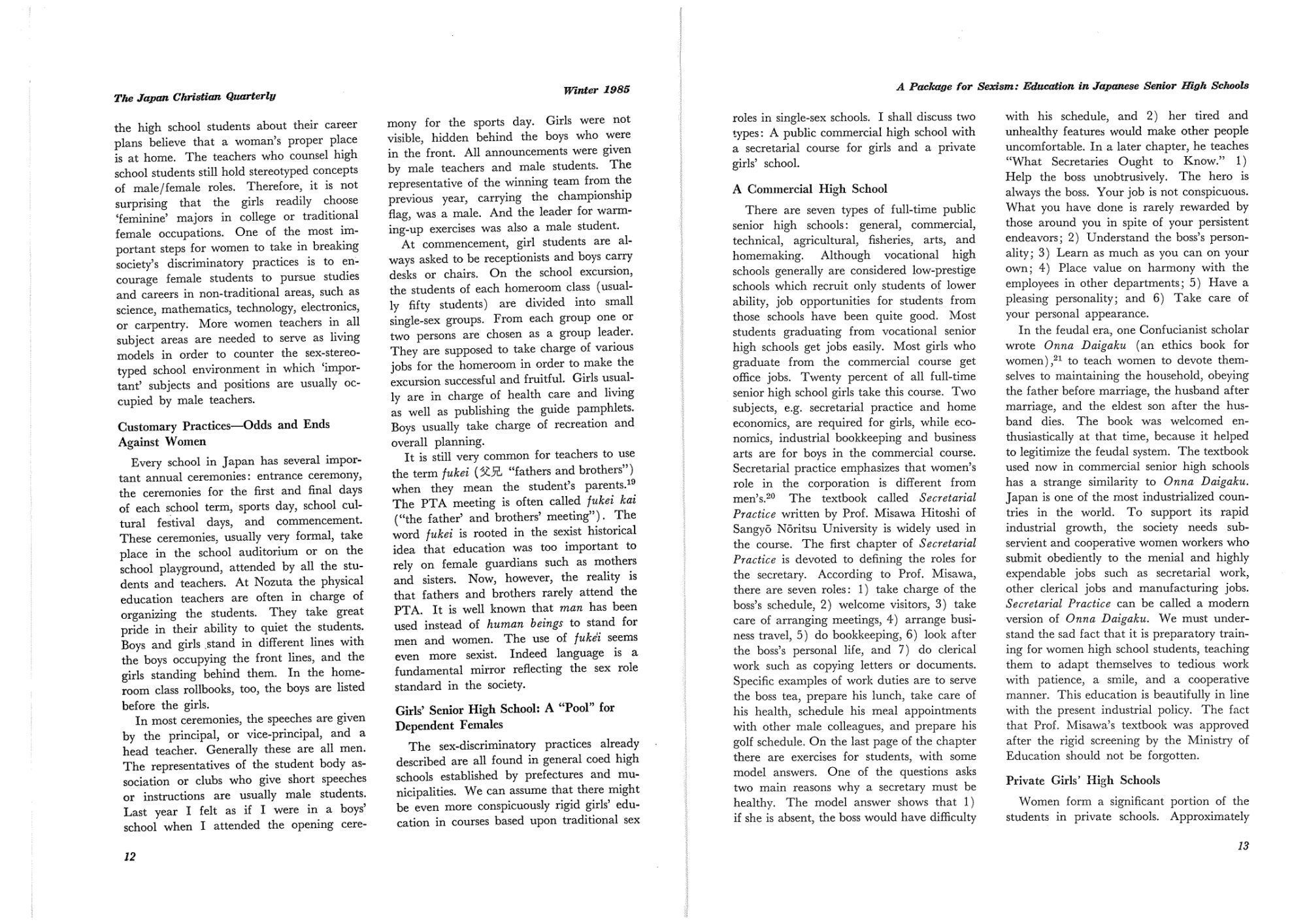 【The Japan Christian Quarterly 1985 Winter】